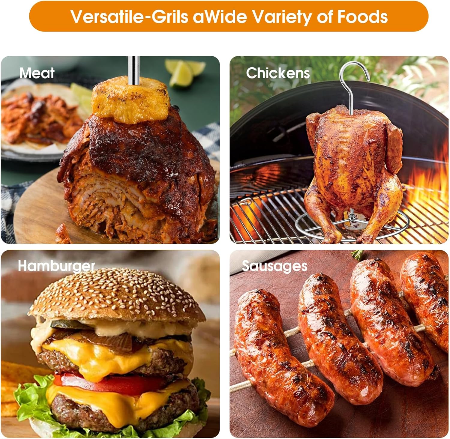 - Versatile Use: With a lifting hook for hanging poultry like chicken, small turkeys, and ducks in a smoker, or for making outdoor barbecue or indoor oven kebabs, this tool can be positioned vertically or horizontally on grill racks or smoker grates. Compatible with a variety of cooking appliances including deep fryers, ovens, outdoor barbecue grills, or smokers, it's not just great for daily grilling but also perfect for holiday gatherings like Thanksgiving and Christmas, making it a wonderful gift for loved ones.
