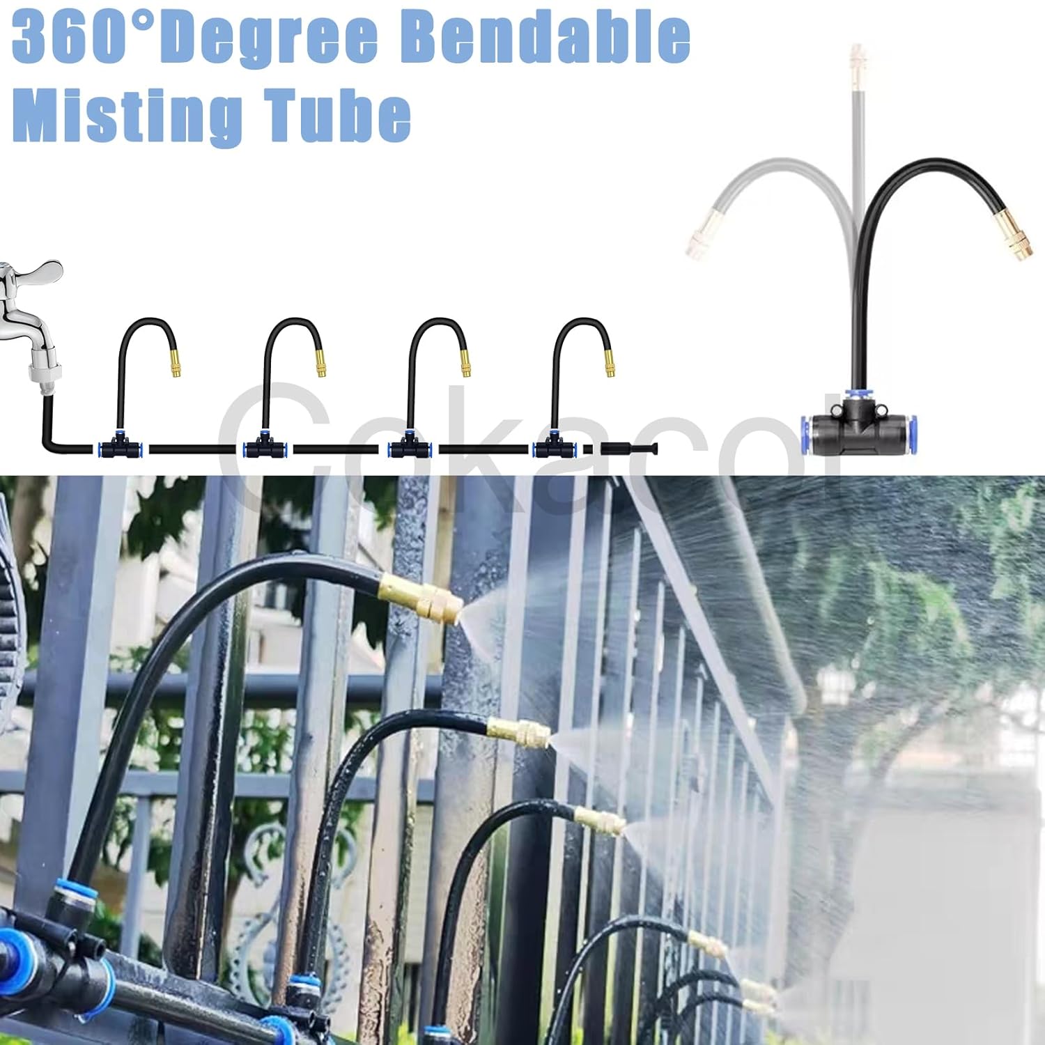 - Bendable in 360° and In Any Direction - This bendable misting irrigation system with Irrigation Tubing allows you to bend its misting nozzles to any direction in 360 degree. Cokacot prepared 10 fix stems help you to fix it on ground or above ground, you may also just hang this misting system kit to fence and no need fixed stems.