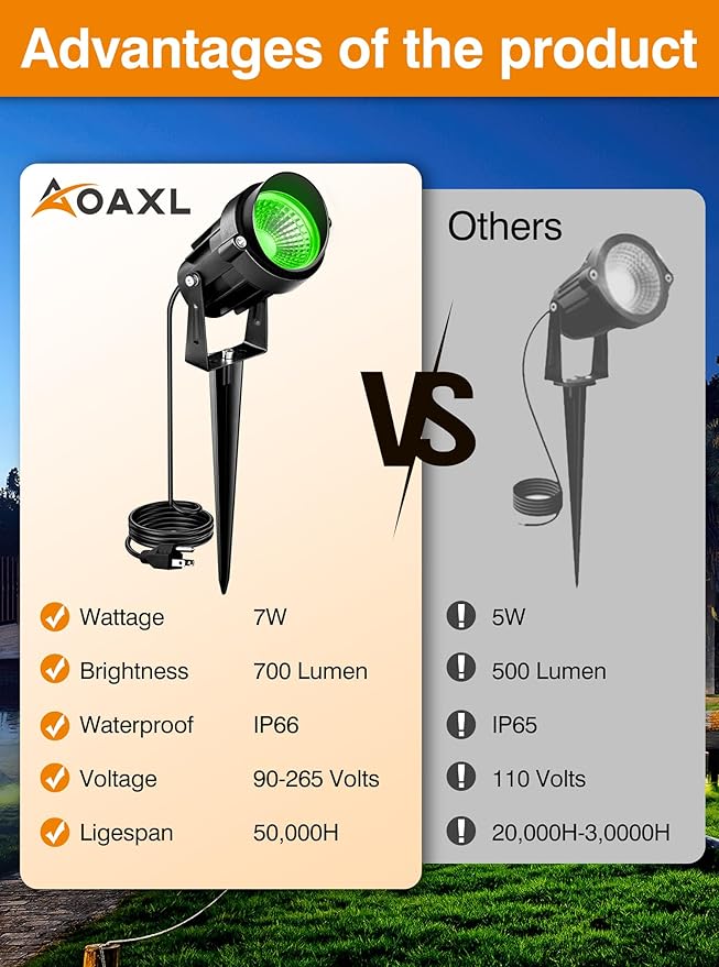 - π[γUltra Bright Green Landscape Lighting] Ultra bright landscape lights with COB beads. It is lighter than normal led landscape lights which perfectly meets your normal lighting needs, Perfect for decorating your yard, trees, house, fence, wedding, Halloween, Christmas.
