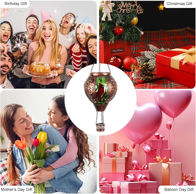 Hot Air Balloon Solar Lantern Outdoor - Flame Hanging Solar Light Waterproof Lanterns for Patio Garden Yard Farmhouse Decor, Great Gift(Cardinal 2)