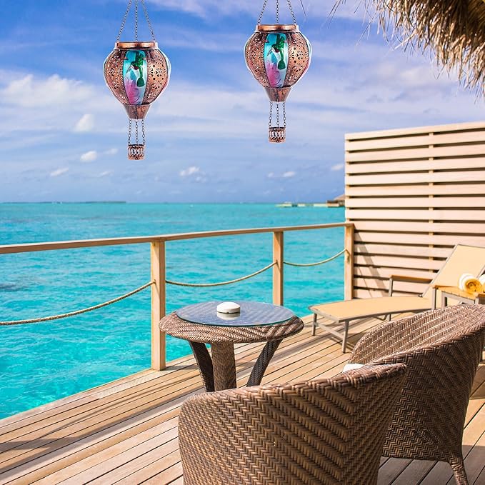 Hot Air Balloon Solar Lantern Hummingbird Lights, Flickering Flame Solar Hanging Lights for Outside,Waterproof for Garden Yard Patio Porch Decoration(Hummingbird)