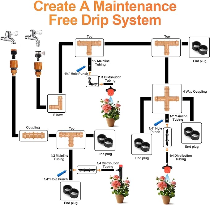 - 【Wide Application】: These 1/2 inch barbed end caps fittings are useful when creating a drip or micro sprinkler system, which allows you to create a custom layout for your planting area. It can be used for raised garden beds, ground covers, shrubs, perennial plants, greenhouse, patio, lawn, and other agricultural watering system.