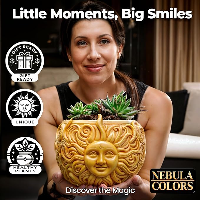 Fun & Unique Sun Face Hanging Planter Quirky Celestial Decor for Plant Lovers – Indoor Outdoor Flower Basket for Succulents & Small Plants – Decorative Garden Yard Art