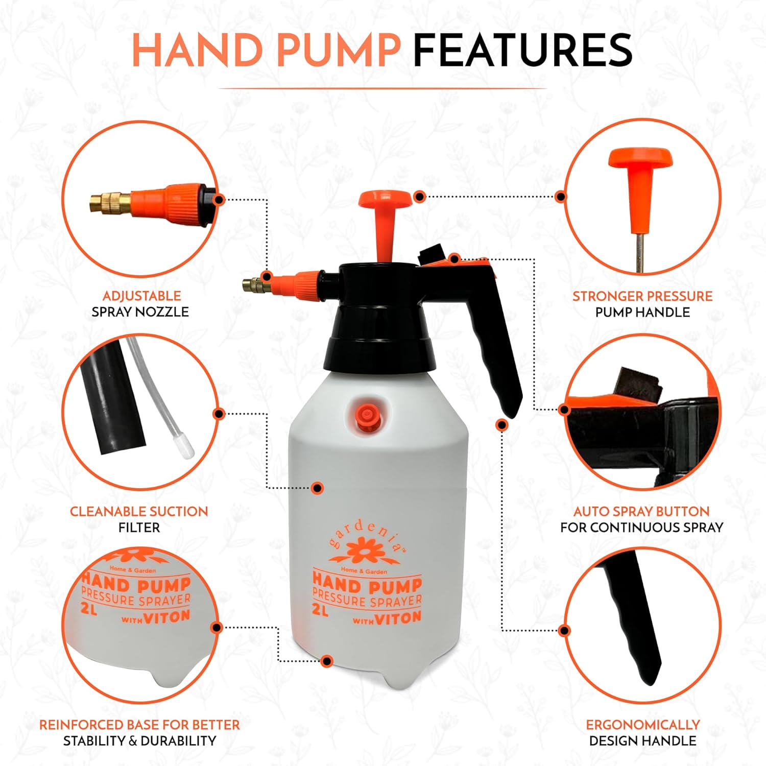 Handheld Pumping Sprayer Viton Seals Sprayers in Lawn and Garden, Spray Bottles for Cleaning Chemical Sprayer Continuous Spray Bottle for Plants 2L Plus (0.53 Gallon/68oz)