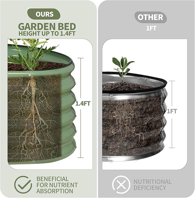 - 【Upgrade Quality & Structure 】The raised garden bed is made of thick galvanized metal with a surface spray coating, which is rust proof and anti-corrosion. Can be used for a long time. The oval design ensures uniform surface force and prevents deformation. More durable than other raised planter box, becoming a good helper for your garden.