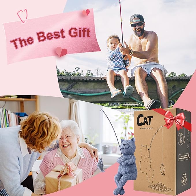 - 【Unique Design】: Our Fishing Cat has caught a wee little fish.Ready to pose on your pond edge. You will enjoy many laughs with friends, and family with his catch of the day on his fishing lure.
