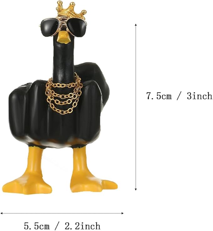 - New Design:The playful Middle Finger Duck is even cooler with the new addition of sunglasses, a necklace, and a crown that will make anyone who sees it smile and add a touch of fun to their lives, whether it's at home or in the office