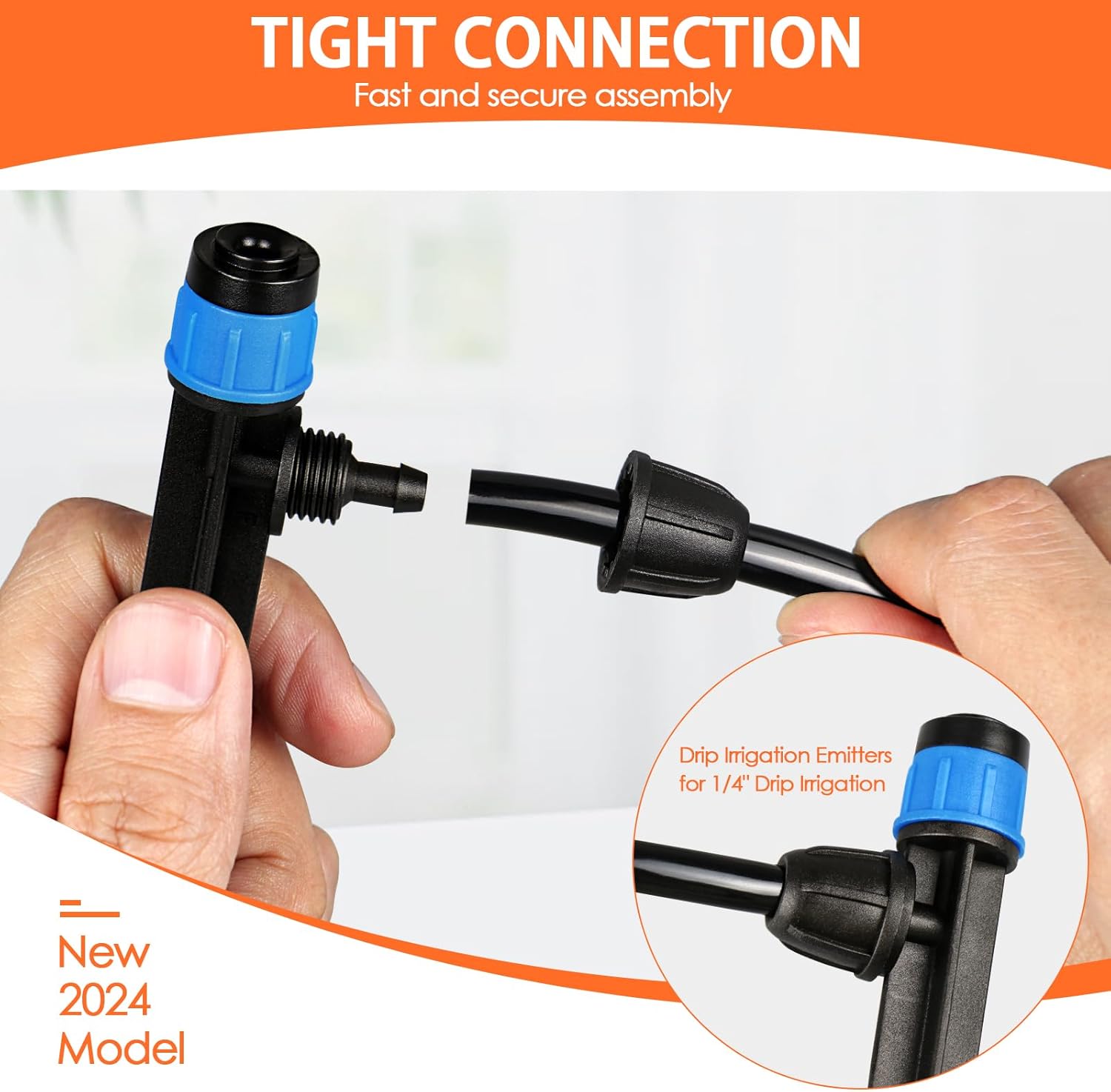 - COMPATIBLE WITH STANDARD 1/4" POLY OR VINYL TUBING: Featured with a self-tapping barbed inlet for easy installation, this 1/4" drip emitter connector provides a leak-proof connection to all brands of 1/4" drip tubing.