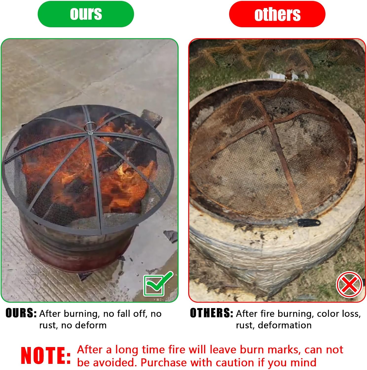 - 【Safe Top Ring】: Our spark screen cover is designed with a metal ring that makes it easy for you to move. Unlike large diameter handles, it is safer to move and won't harm yourself due to sliding. It is convenient for you to increase firewood at any time and keep the fire pit continuously burning