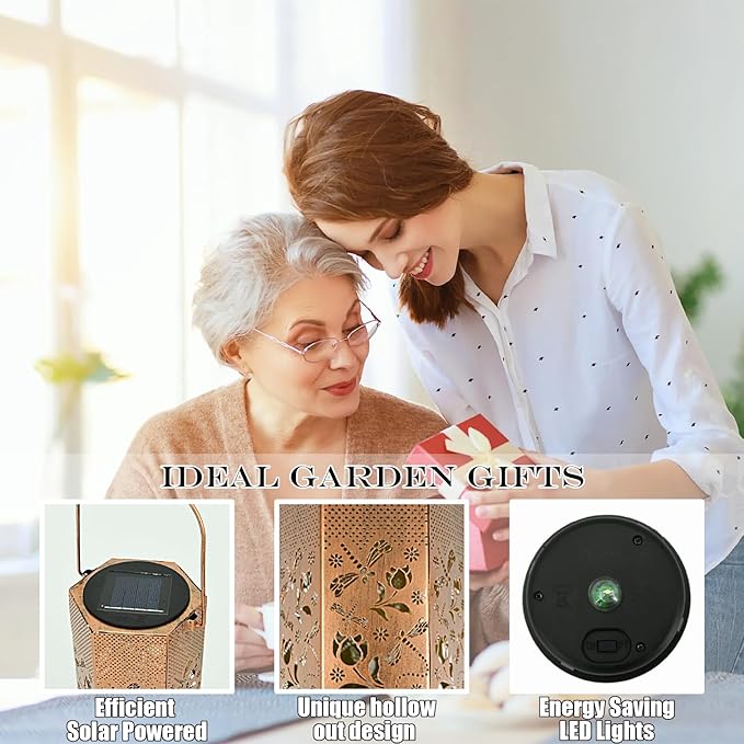 - Imaginative Garden Decor - Eandisom Outdoor Solar Lanterns are crafted from upgraded durable metal, The retro appearance, with gold copper color and hollow out metal veneer, gorgeous color, casts bright and warm light in darkness, accompanied by gorgeous and graceful patterns, adding a beautiful atmosphere to the surrounding environment. Add illuminated charm to a garden, patio, porch and outdoor tabletop with these solar lantern lights. Make your outdoor spaces unique and amazing.