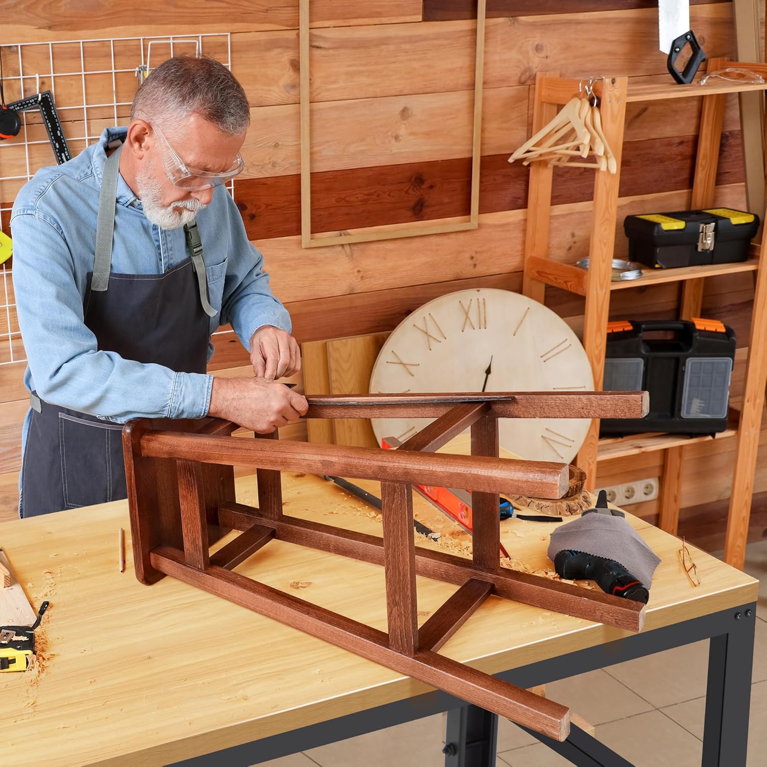 - Heavy Duty Work Bench: Constructed of high quality materials, the workbench consists of a 1" thick wood board tabletop and black textured steel frame that withstands powerful impacts up to 2000 lbs