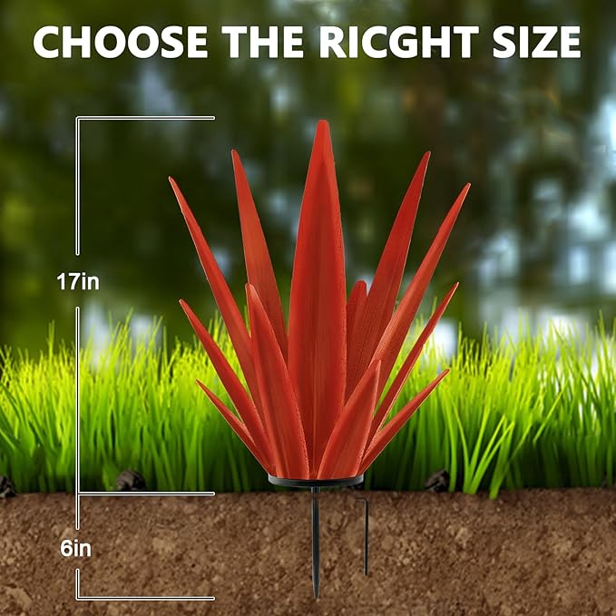 Enlarge Metal Plants Tequila Rustic Sculpture, Outdoor Patio Yard, Home Decor Hand Painted Agave Garden Statue, Outdoor Lawn Ornaments Yard Stakes for Mom Gift (1 Big RED)