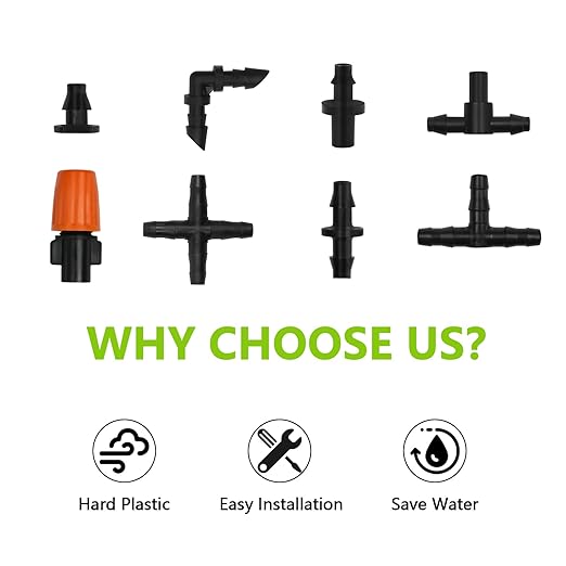 - Durable & Dependable Drip Irrigation Components: Constructed from high-impact plastic material, these 1/4 inch drip irrigation parts offer a sustainable irrigation solution that is both durable and reliable, capable of withstanding various weather conditions.