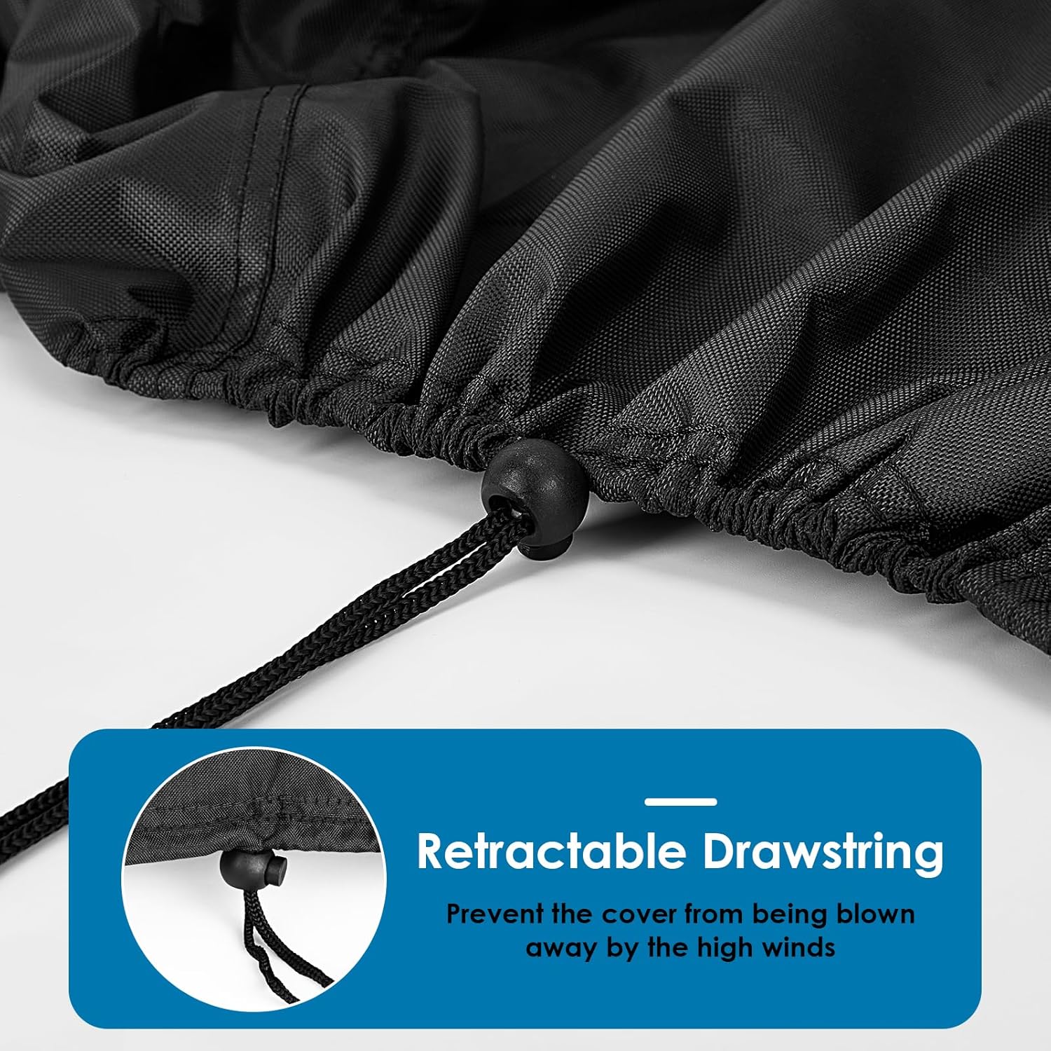 - Windproof Design: There is a drawstring at the bottom of the cover that can be tightened to make the cover fit the grill more tightly and prevent the cover from being blown away by strong winds