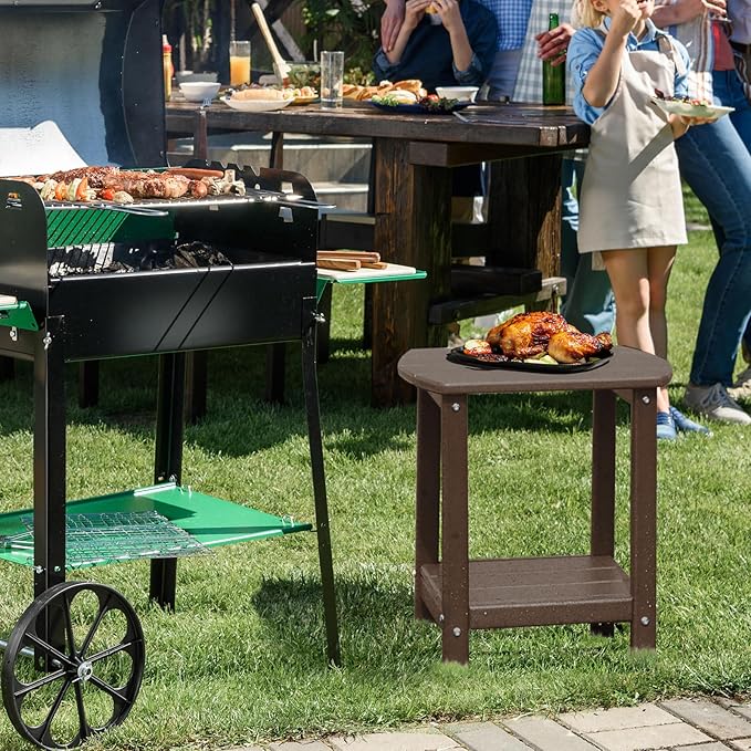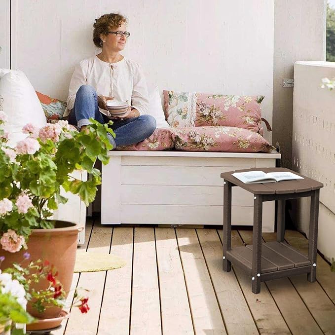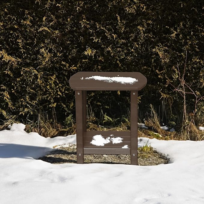- 【DURABLE MATERIAL】This side tables are made of recycled plastic HDPE material that is more weather resistant than other poly lumber table.HDPE is an eco-friendly solution to wood.Weatherproof, heavy-duty construction withstands a range of environmental stressors,Weatherproof, heavy-duty construction withstands a range of environmental stressors
