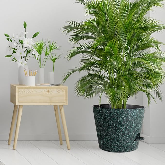 12 inch Large Self Watering Pots for Indoor Outdoor Plants, Flower Plant Pots with Mesh Drainage Holes for Garden, Plastic Planters with Reservoir for Home Plants, Black with Green Speckles