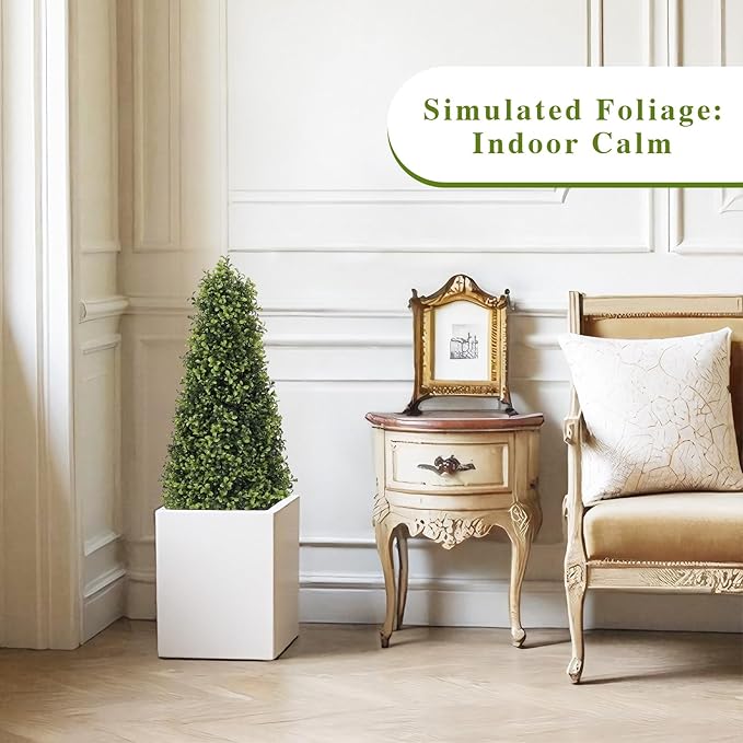 - Lifelike & Elegant Design – This artificial boxwood topiary tree features realistic foliage, varied leaf shapes, and a faux bark trunk, creating a natural look with rich green tones that enhances any space