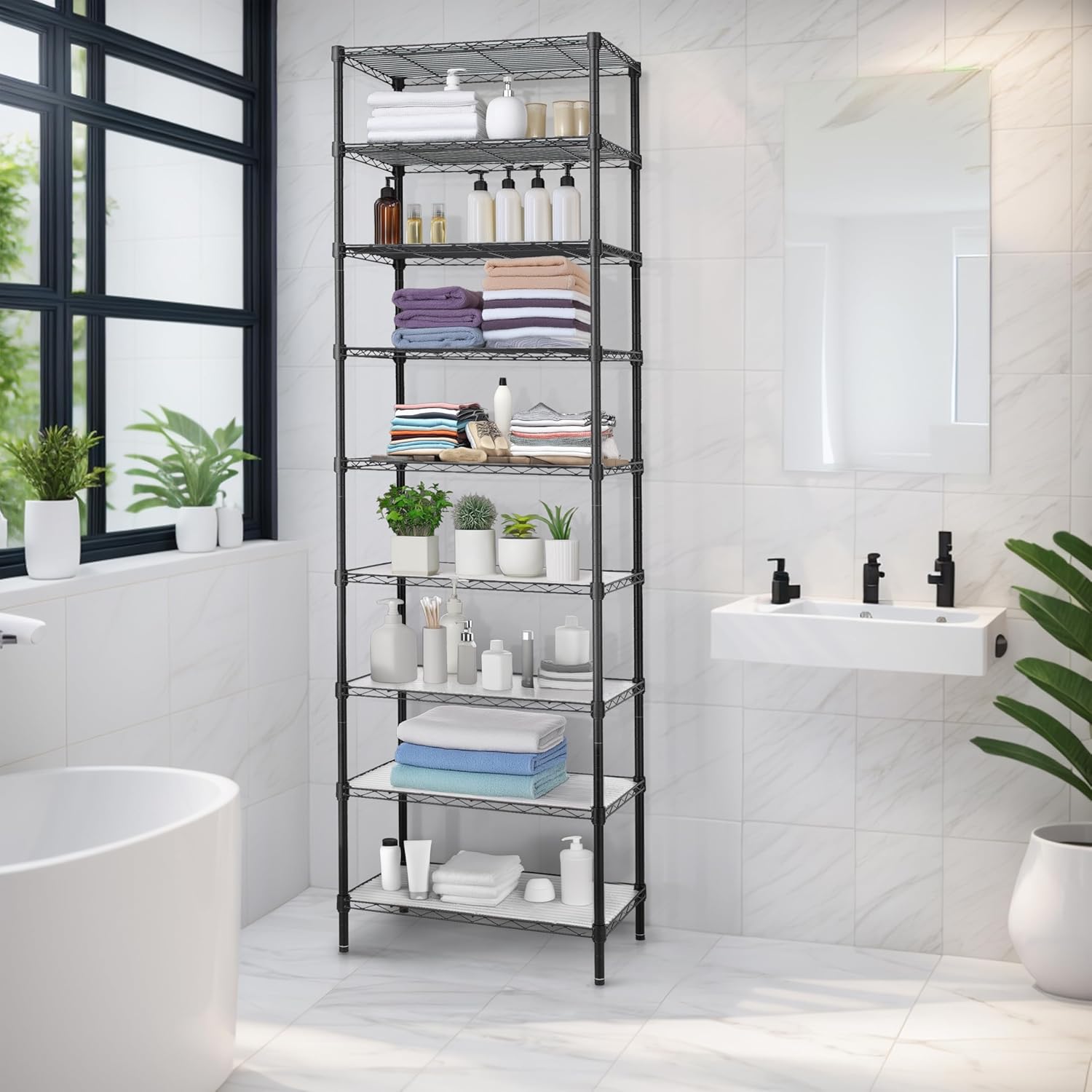 - UPDATE and OPTIMIZE - A lot of customers who bought our shelving rack want to make it higher, so we have developed a new shelf which are 81 inches height and have 9 shelves. Taller and more shelves can create a lot of extra storage space in your home narrow space in kitchen, office, garage, bathroom and more a good helper for your home storage need.