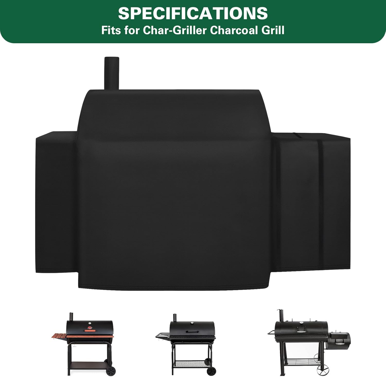 Grill Cover Fits for Char-Griller Outlaw 3724, E2137, Pro Deluxe 2735 Grill, Expandable BBQ Grill Cover 600D Heavy Duty Charcoal Grill Cover Waterproof Outdoor Grilling Cover, Model 3737