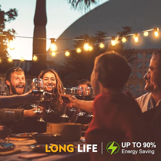- 【Weatherproof String Lights for Outside】Rain or shine, our S14 string light bulbs shine bright, resilient against rain, wind, and extreme temperatures. Featuring shatterproof bulbs and stable construction, safety is paramount—no more worries about broken glass shards!