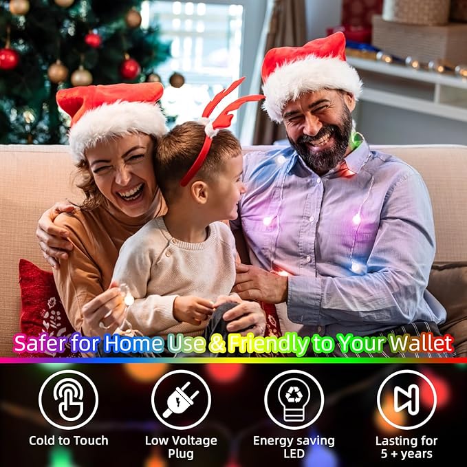 - Christmas Lights & Energy-efficient: Our LED Christmas lights offer a safe lighting solution for your holiday decor, especially when it comes to their soft and gentle glow. The decorative lights are designed with energy-efficient LED bulbs, consuming less electricity and lasting longer than traditional lighting options. They're an eco-friendly choice for your Christmas decorations.