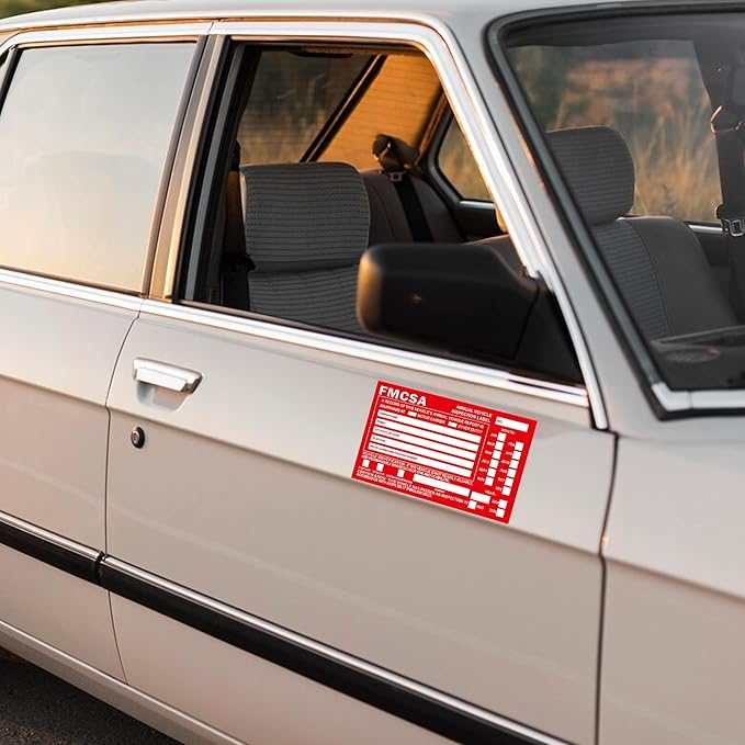 - Durability and Convenience:Durable 1.6 mil aluminum FMCSA sticker is red with permanent adhesive ensuring label will not peel off or be destroyed by the elements ensuring long-term protection of annual inspection records for future reference.