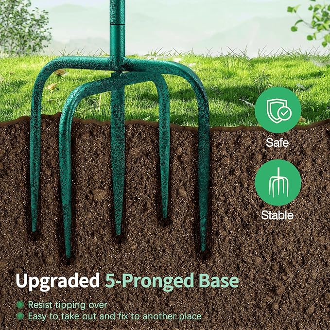 - 【New Upgraded 5-Pronged Base】Upgraded 5-forked base that resists tipping, adds more stability for this birdbath, make sure this birdbath stay in the soil of your garden upright and firmly. Heavy duty metal stake with black powder coat finish offers strong support for this bird bath, so that it is hard to bend, break or fracture.