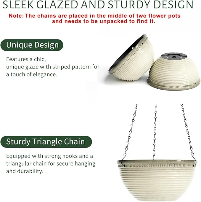- Strong Triangular Chain: Super load-bearing triangulated chain with three rust-resistant chain and hook, this hanging pots for plants indoor increased stability for easy hanging. The chain can also be removed, allowing the hanging planter pots to be placed on a tabletop.