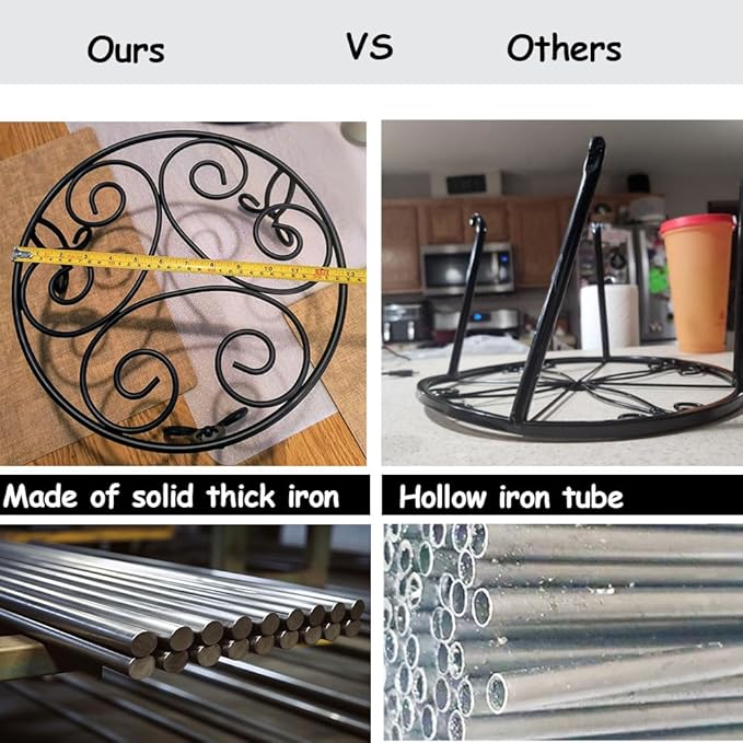 - 【HEAVY DUTY】: This plant holder is made of thick,quality SOLID iron steel.NOT HOLLOW IRON PIPE.It is heavy duty.Can holds a plant in a heavy ceramic pot.Load capacity up to 300 pounds.