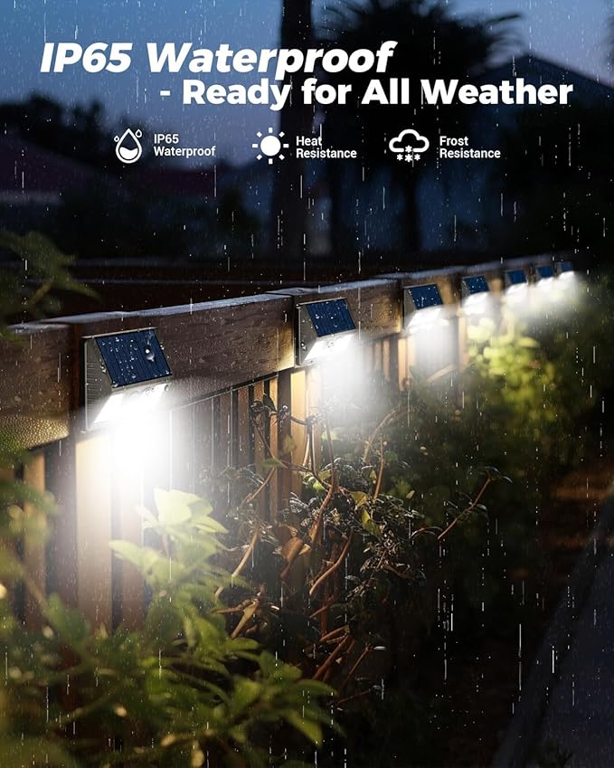 - 【Durable IP65 Waterproof-Built to Last in Any Weather】: This small but powerful fence post solar lights boasts IP65 waterproof technology, making it resistant to rain, snow, and extreme temperatures. Its durable, weatherproof, and heatproof plastic construction ensures long-lasting performance, even in harsh outdoor conditions