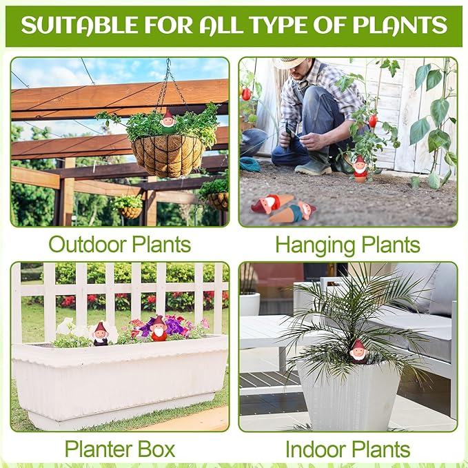 - Easy to Use: to use, simply soak the watering spikes for 15 minutes, loosen the soil, fill the gnome terra cotta watering spikes with water, placing it in the moist soil; Refill every 3-7 days according to your adjustment, paving the way for convenient and worry free plant care, especially during vacations or while you're away