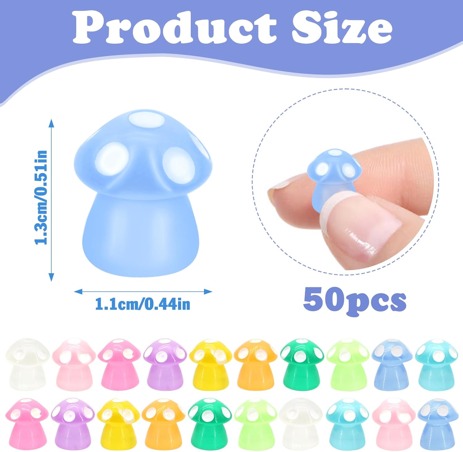 50Pcs Luminous Mini Mushrooms, Small Fairy Garden Mushrooms, Tiny Mushrooms Figurines for DIY Craft Micro Landscaping Decoration