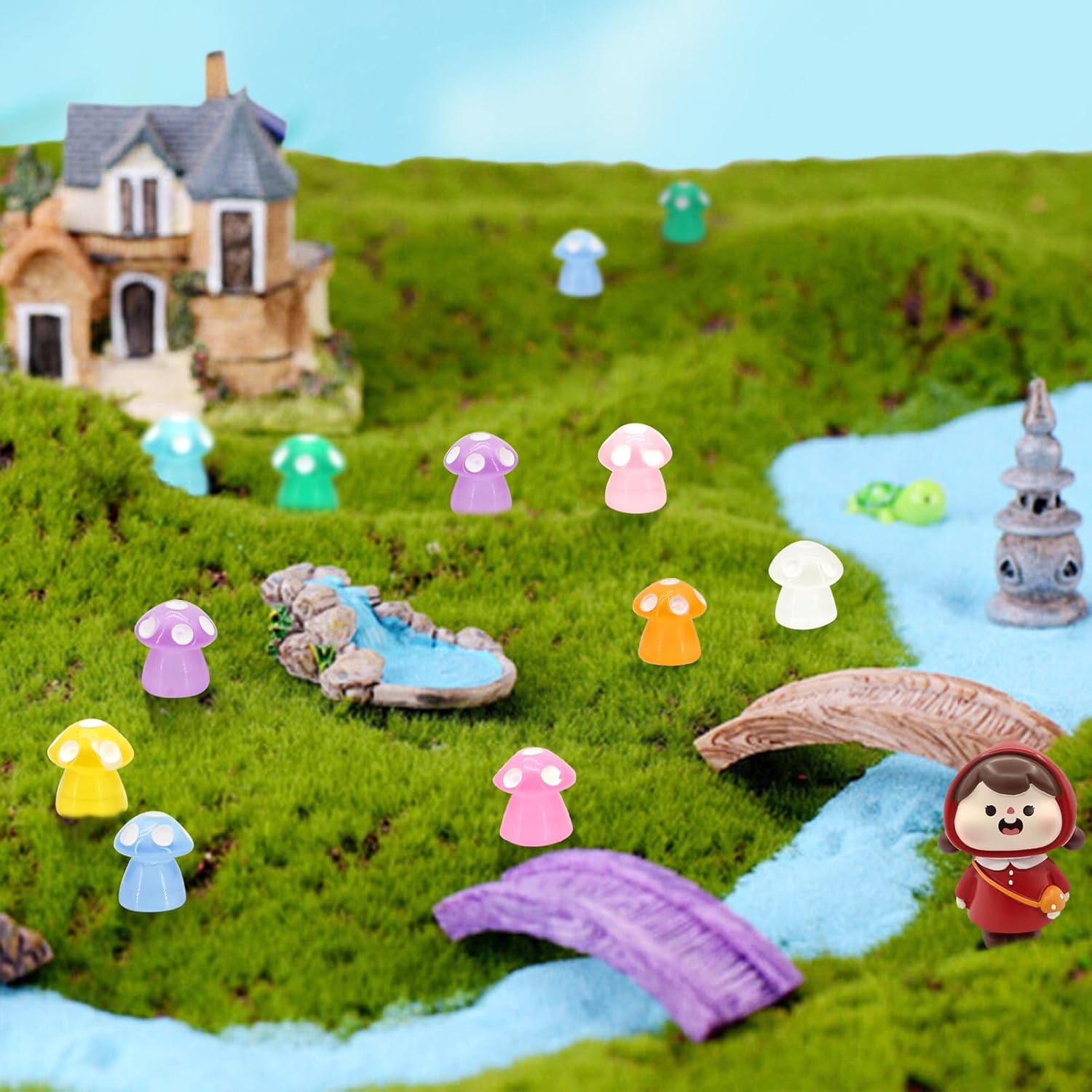 - 【Luminous Design】Mini Resin mushrooms have a unique luminous effect. They needs to be placed in the sun to absorb light so that thet can glow in the dark, very cute and ideal for mini fairy garden, home, office decorations.
