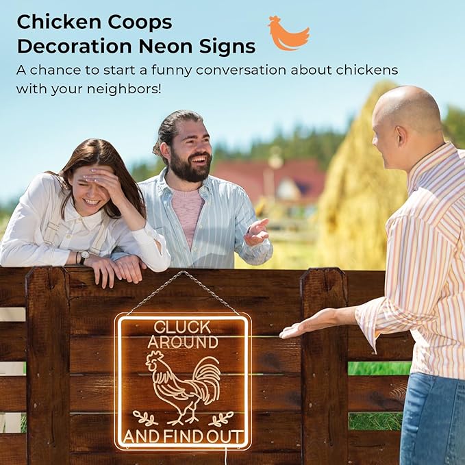 - 【Chicken Gift for Chicken Lover】It’s a rooster decor for people who love chicken,Create a humorous light and a nice light atmosphere for your chicken coop. If you don't understand what CLUCK AROUND AND FIND OUT.Ask your friends who have chicken, it's a very funny phenomenon in chicken keeping: if you give your chicken an inch to roam, they will take ten miles!
