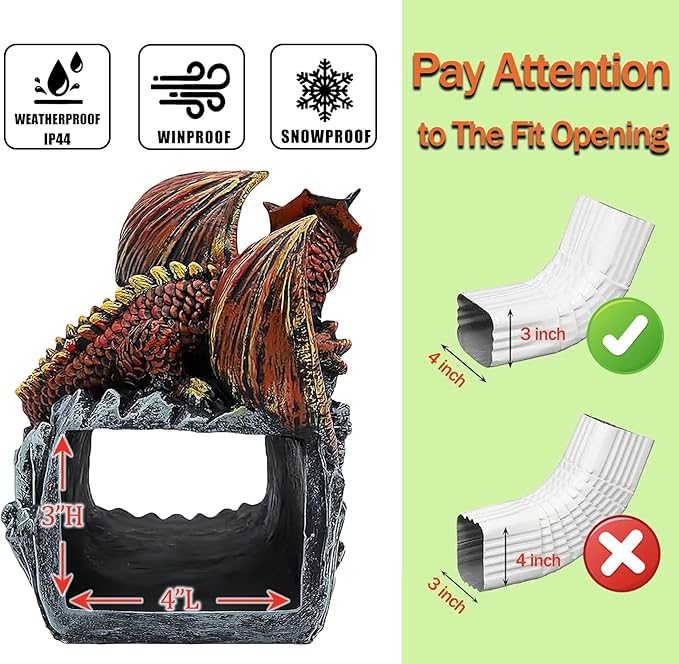 - Eco-Friendly Composition: Crafted from natural resin, our dragon-themed gutter downspout is an environmentally-friendly alternative to traditional metal and plastic diverters, promoting greener living.