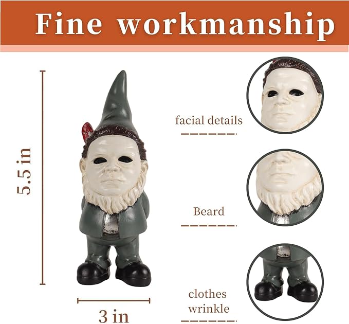 - Halloween Gift: The garden statues for indoor home decor are such cute and funny gnomes. Perfect for hiding in a neighbor's garden or placing in your own garden for a spooky vibe. This is the perfect gift for your friend who loves gnomes and movies