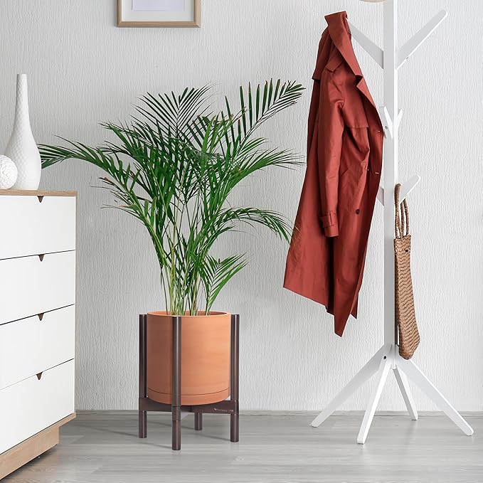 - A Complete Set: Mid-century terracotta planter, combined with a sculptural, solid wood stand that match perfectly together and looks great in anywhere.