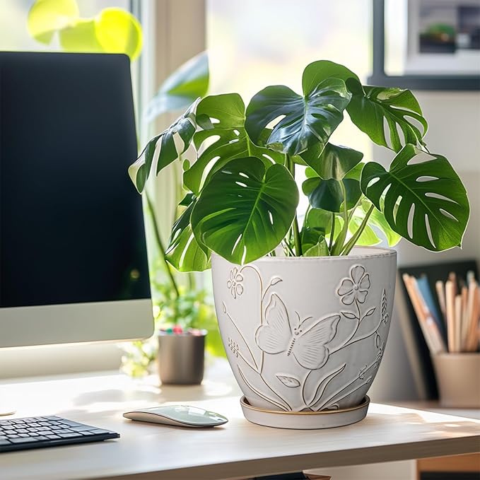 - Suitable for A Variety of Plants: This ceramic plant pot with trays suitable for small to medium-sized plants such as orchid, succulents, bonsai, cacti, aloes, money tree, olive tree, monstera and so on