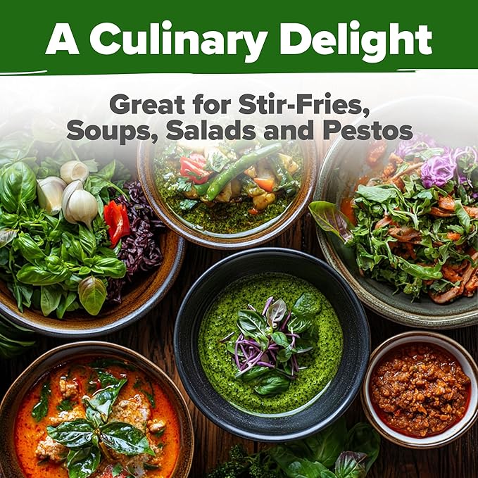 - Fresh and Aromatic Basil for Culinary Excellence – Elevate your cooking with fresh, aromatic Thai basil. These herb seeds provide a consistent supply of flavorful herbs, perfect for soups, salads, and authentic Thai dishes from your basil plant.