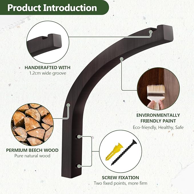 - Premium Beech Wood Construction: Crafted from high-quality, solid beech wood and finished in a beautiful walnut color, these wall-mounted plant hanger hooks are sturdy, durable, and perfectly suited for both indoor and outdoor use. They can support planters up to 11" in diameter or 15 lbs. These heavy duty wall hanging hooks are sturdy and well built.