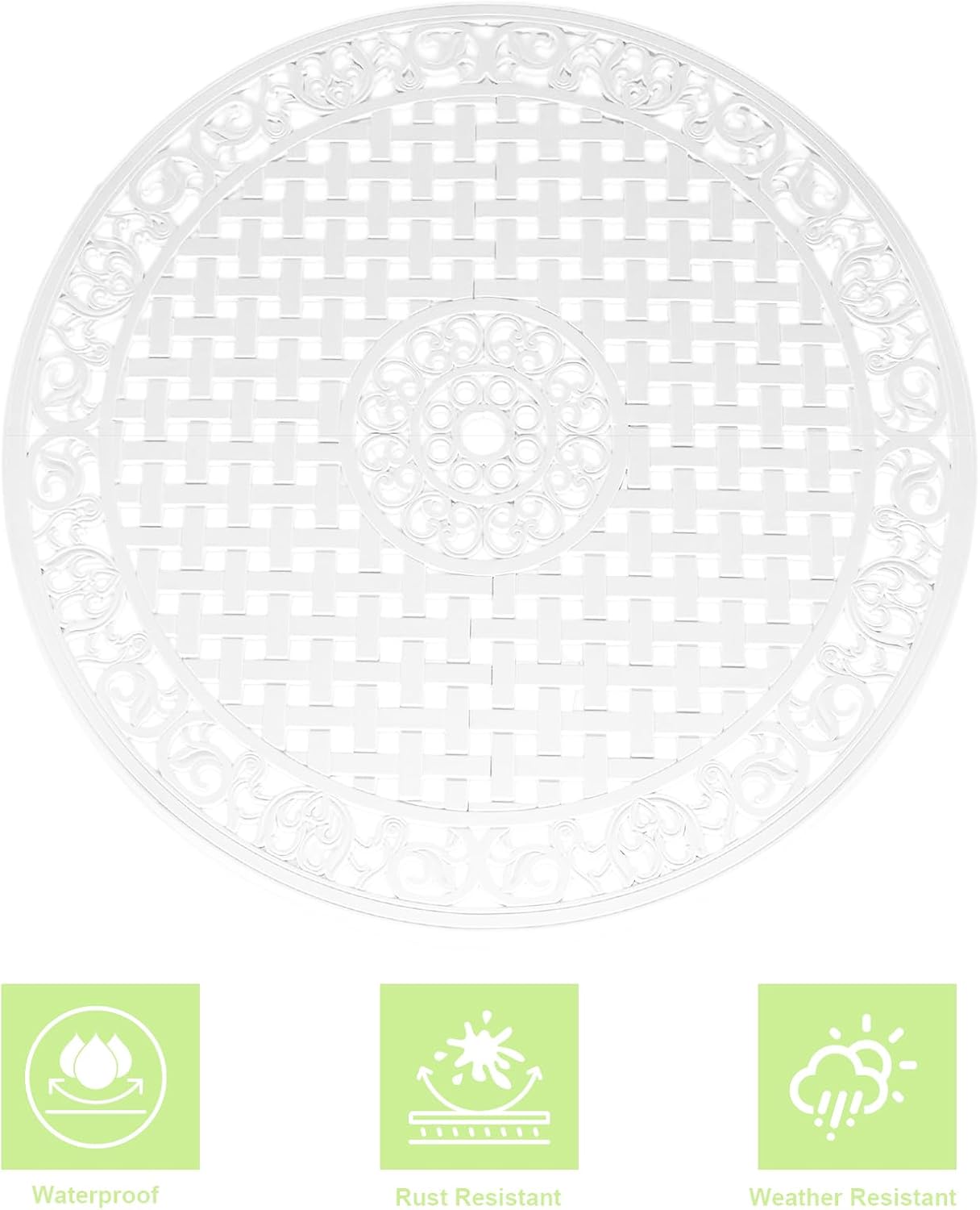 - Durable Cast Aluminum: The frame made of high-quality aluminum with powder coating protects the outdoor patio bistro sets from getting rust all weather and ensures the round dining table set durability for years to come.