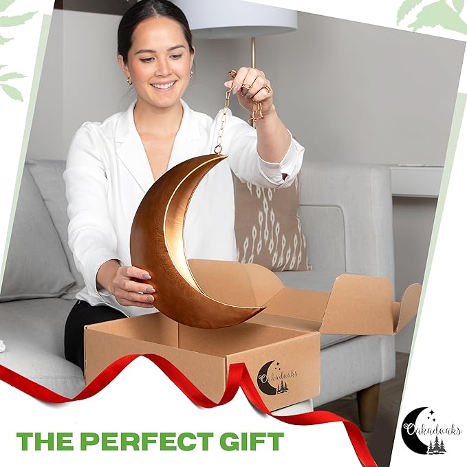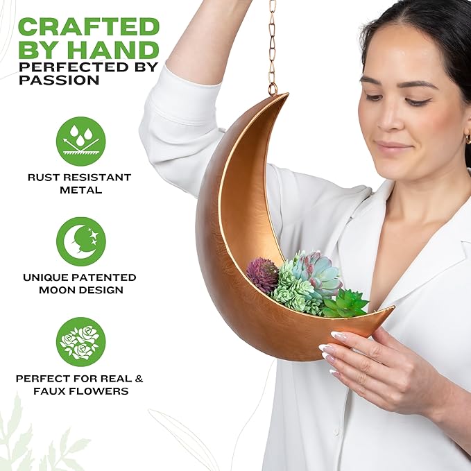 Gold Hanging Moon Planter – with Drain Holes - Moon Room Decor - Unique Planters for Succulents,Air Plant, Cactus, Artificial Plants- Plant Lover Gifts - Boho,Hippie, Birthdays,Witchy Gifts for Women
