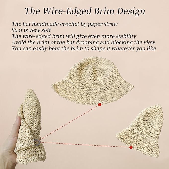 - 4.Wire-Edged Brim Design-The hat handmade by paper straw,so it is very soft,The wire-edged brim will give even more stability,avoid the brim of the hat drooping and blocking the view, you can easily bent the brim to shape it whatever you like