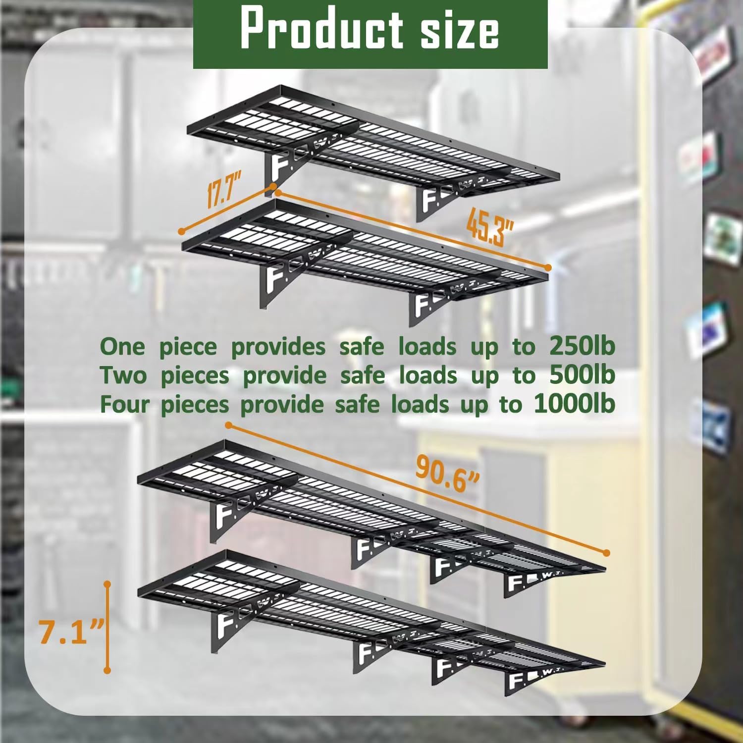 - UNIQUE DESIGN: The surface of the garage wall shelving is made of ‘high temperature powder coating’ process, which makes the surface smoother and more durable, and the edges are also wrapped to avoid scratches.