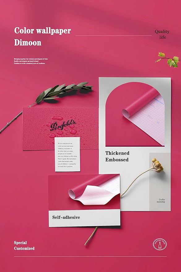 Dimoon 118''x17.7'' Pink Peel and Stick Wallpaper Contact Paper Modern Self Adhesive Wall Paper Removable Renter Friendly Textured Solid Color Shelf Cabinet Vinyl Roll (118''x17.7'',Rose Red)