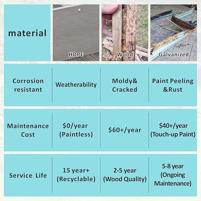 - 𝐖𝐚𝐫𝐫𝐚𝐧𝐭𝐲 𝐏𝐞𝐫𝐢𝐨𝐝:Our planting flower box bed come with a 5-year warranty. During the 5-year warranty period, if there is cracking or rot in the planter box , we offer free repair or replacement