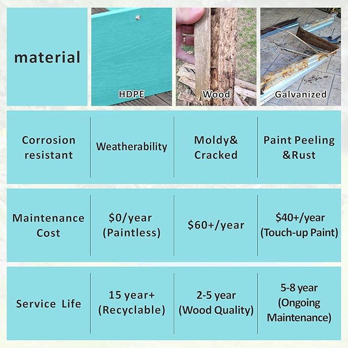- 𝐒𝐚𝐟𝐞𝐭𝐲:Made from HDPE, the plant bed does not use any water-based or oil-based coatings,ensuring that your fruits, vegetables, plants, and herbs grow safely