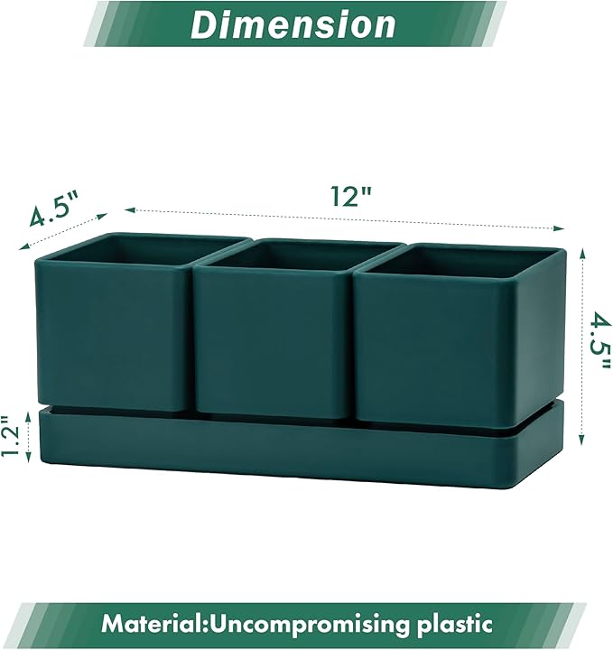 - Dimensions: Set of six herb pots and tray. Each herb box is 4” W x 4.3” H. Tray: 11.8” L x 4.3” W x 1.2” H, great size for planting herbs, vegetables and cactus etc.