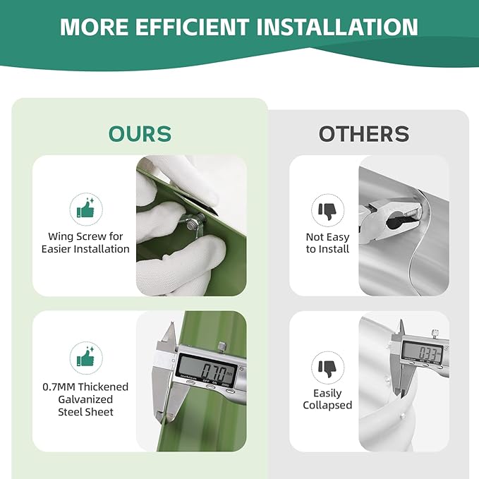 - 【 Double folded edge design 】Our raised garden bed kit features a rounded edge design that protects you and your family from scratches during installation.