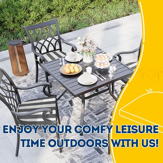 - Wide Use & Tips: These outdoor dining chair cushions fit pools, patios, balconies, decks, backyards, and gazebos. Foam inserts and covers are packed separately in bags and placed in one box—check all parts. Easy assembly required